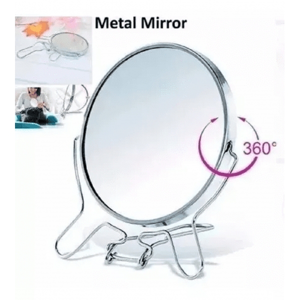 Este espelho elegante e funcional oferece ampliação dupla face, com um suporte aramado resistente, garantindo praticidade e estilo em sua rotina diária de beleza.