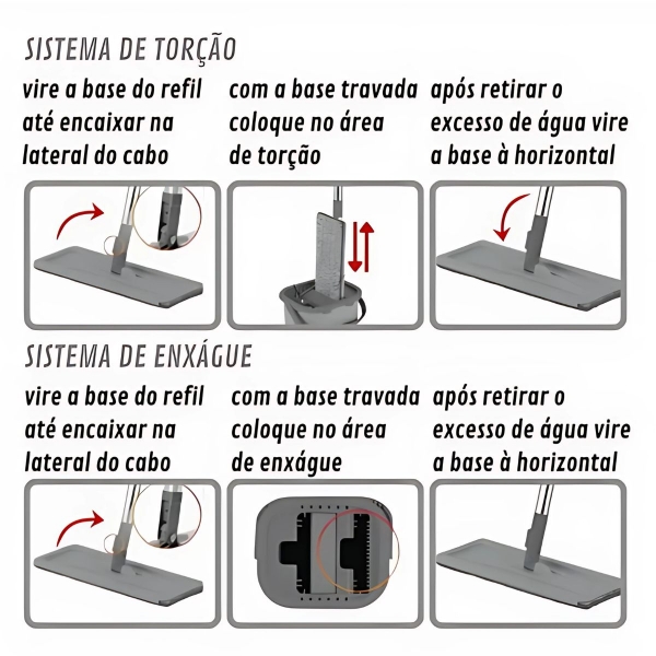 Informações do produto: Mop Limpeza Rodo Giratório 360° Esfregão Balde Flat Aço Inox